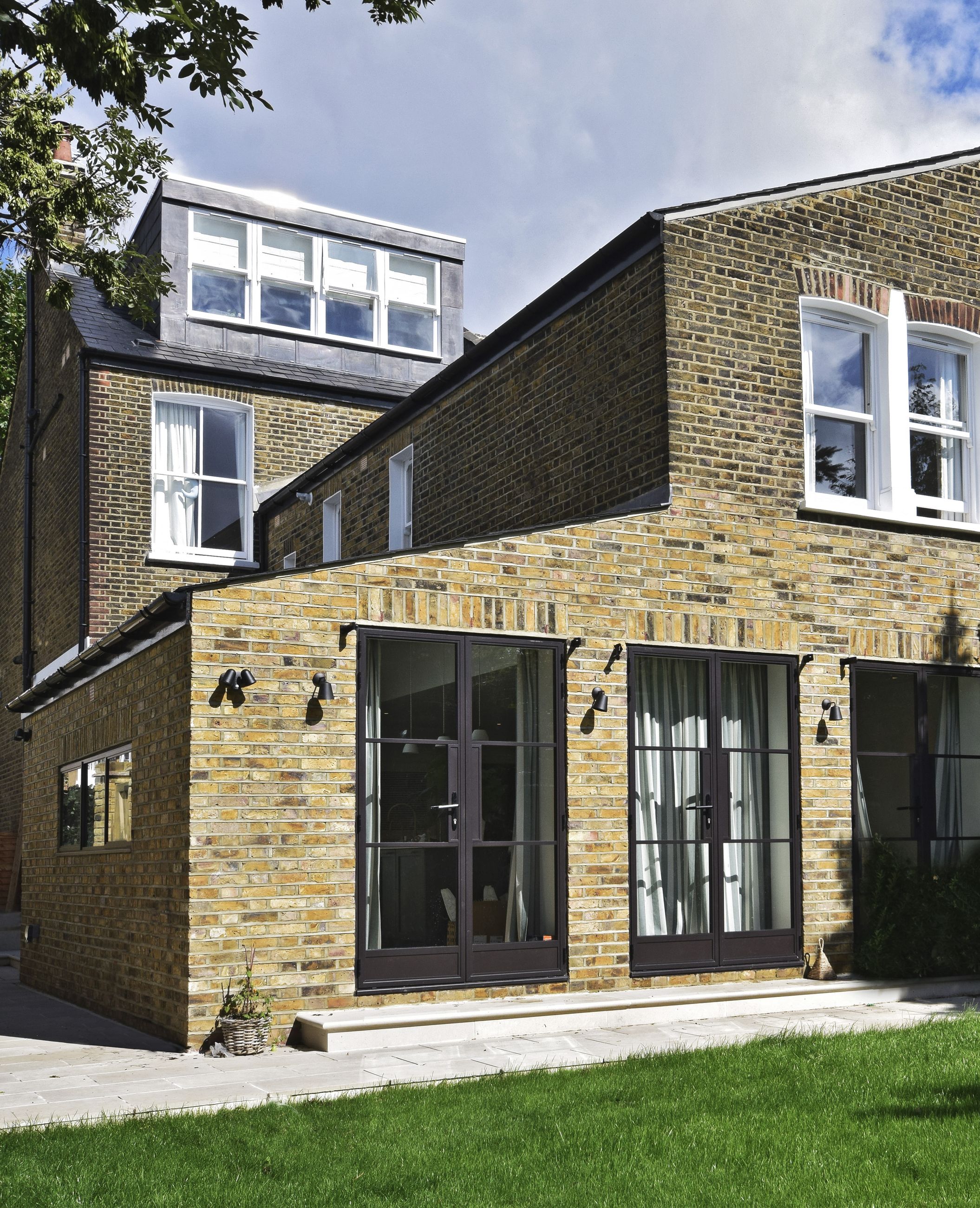 The practical benefits of this structural glass link are substantial. It provides a weather-resistant, thermally efficient passage between the two parts of the house, enhancing the usability of the space. From an aesthetic perspective, the glass link creates a striking visual effect, making the transition between the old and new parts of the building almost imperceptible.
