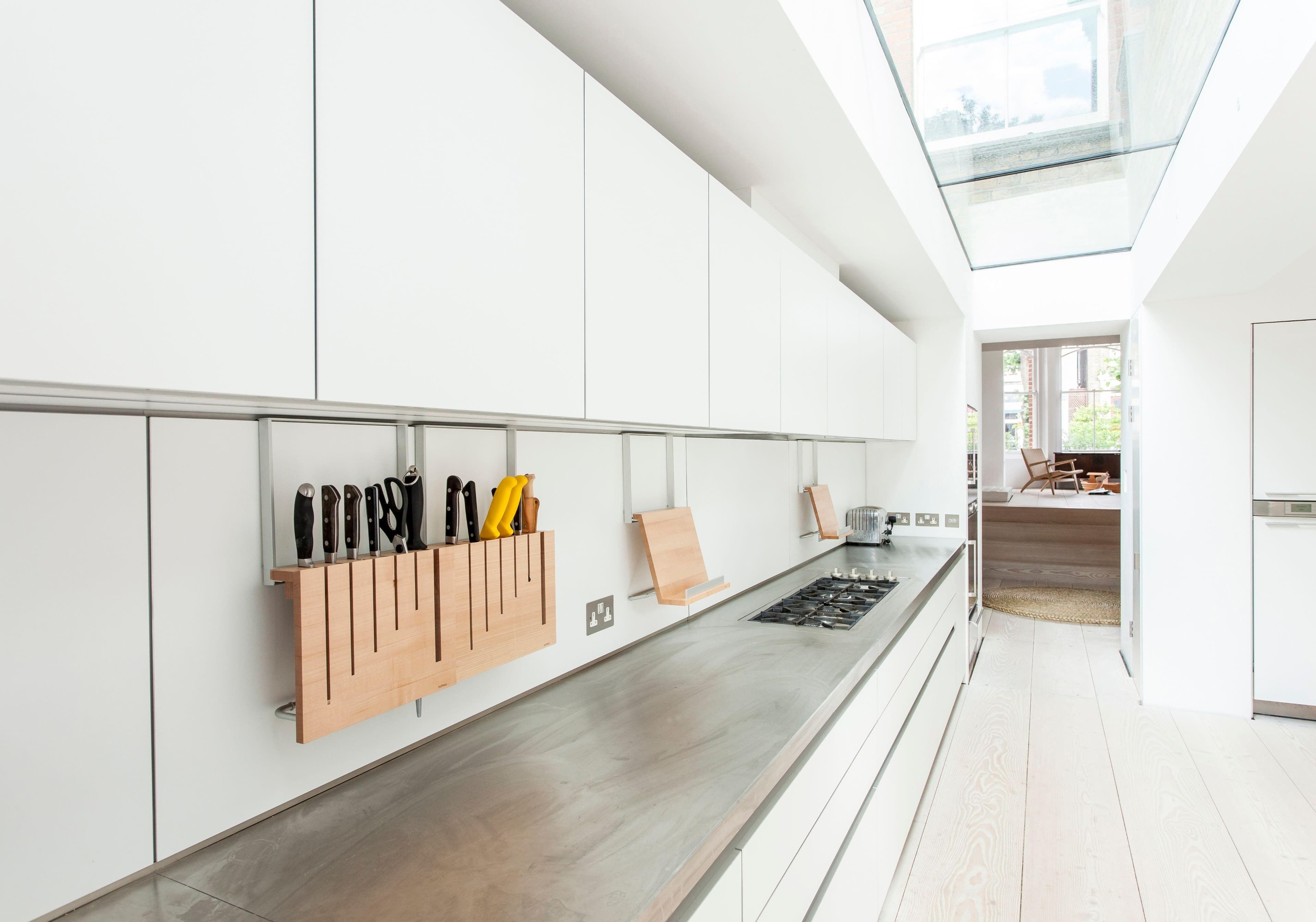This terraced house exemplifies the transformative impact of natural light in enhancing a living space. The design objective was straightforward yet impactful: to maximise natural light within the uniquely shaped rear extension. By incorporating a sliding door system like the FD20, you can achieve a minimalist aesthetic that amplifies the luminosity throughout a space. The crowning feature of this design is the Structural Glass Rooflight that extends along the entire length of the extension, offering unobstructed views of the sky above.